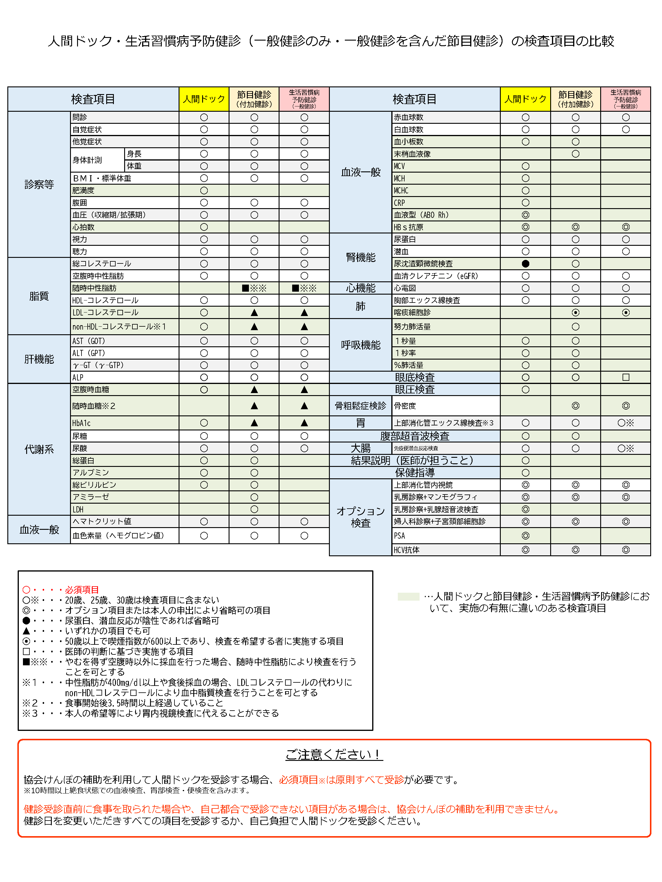 ※年度内で一般健診と人間ドック健診との補助併用はできません。